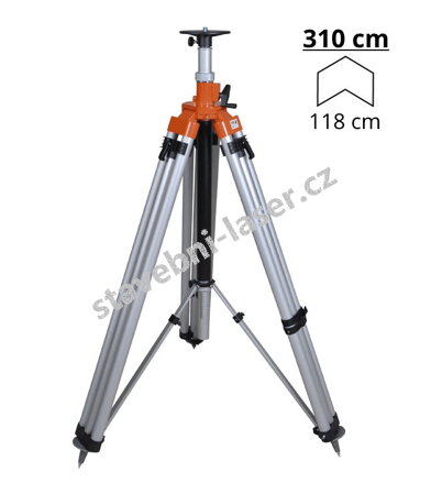 Teleskopický stativ Jumbo je extrémně robustní a odolný stativ pro řízení zemních strojů, který dovoluje vysunutí rotačního laseru do výšky 3,10 m. Možné využití je i pro laserový skener.